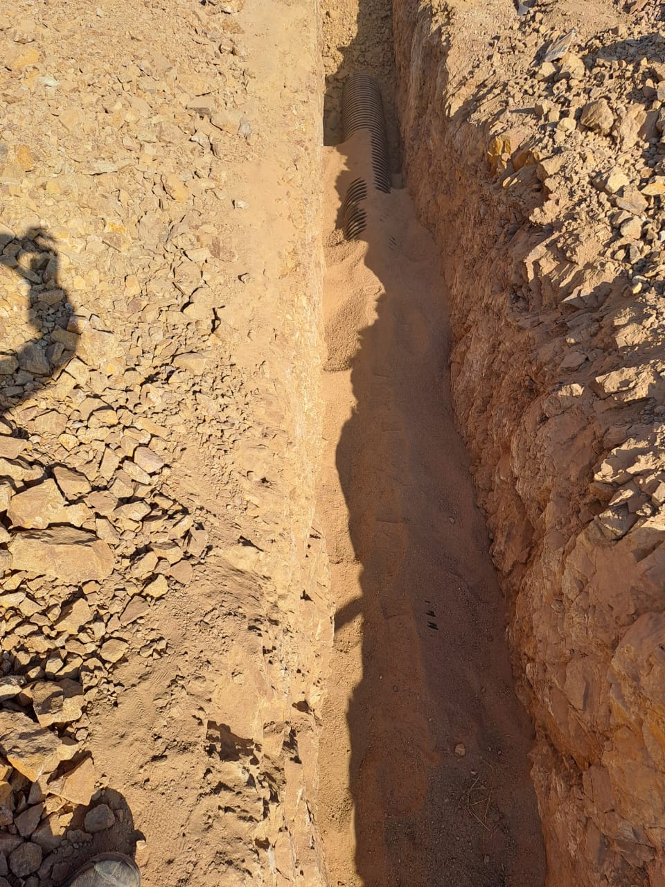 Trazo y nivelación, excavaciones, excavación con maquinaria de la línea trazada cuidando los niveles y las pendientes establecidas en el proyecto. Se colocarán varillas para establecer ejes de referencia dentro de la excavación para el alineamiento de la tubería posterior a colocar. Se realizará por medios manuales el afine de los taludes y de plantilla en toda la excavación; colocación y tendido de la cama de arena en todo lo largo donde se colocará la tubería compactándola con pisón manual obteniendo un espesor de 10 cm. Instalación de tubería de ads de 12” alineándola con los ejes de referencia ya establecidos. Acostillado de tubería con material mejorado; construcción pozos de visita con tabicón pesado de 10x14x28 asentado y junteado con mortero con asentado en plantilla de concreto de 15 cms de concreto hidráulico de 150 kg/cm2, aplanado al interior y pulido con mortero y forjado de media caña en el interior colocando escalera marina con varilla de 5/8” anclados al muro instalación de brocales de polietileno en los pozos de visita y realización de limpieza general de obra, recolección de basura y escombro producto de la excavación.
