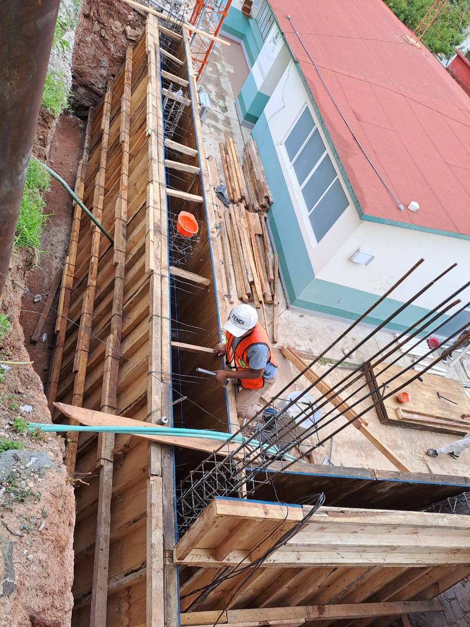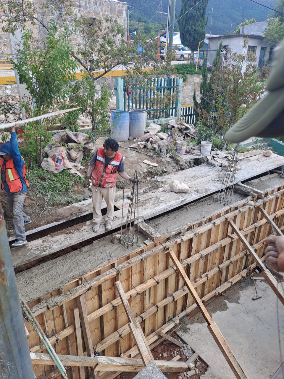 Trabajos consistentes en: trazo y nivelación, corte de firme de concreto, demolición de firme de concreto armado, excavación con maquinaría de cepas en material tipo «b», excavación con maquinaría de cepas en material tipo «c»; construcción de plantilla de arena apisonada con equipo, en cepas para tubería, relleno a volteo con material producto de la excavación construcción de caja de operación de valvulas tipo i para tuberia de 100 mm de 0.80 x 0.80 x 1.00 de tabicon de concreto, atraque de concreto para tubería de 4» de diámetro, carpeta de 10 cm de espesor de concreto asfáltico en caliente, construcción de zapata aislada de 1.20×1.20×0.225 m. Peralte promedio, dado de 50×50 cm arm 8 1/2″, de f’y=4200 kg/cm2, est.#2 @ 20cm de f’y=2300 kg/cm2, concreto de f’c=250 kg/cm2, columna de 40×40 cm. De concreto de f’c=250 kg/cm2, cable de acero 5/8″ para toron y la instalación hidráulica.